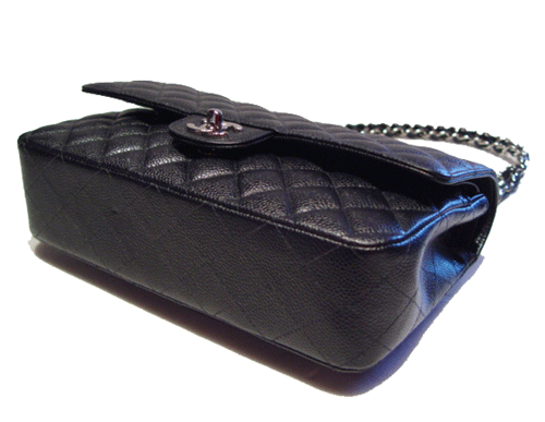 샤넬 클래식 은장 체인 숄더백입니다. - 블랙 컬러의 캐비어 가죽소재로 백의 오픈은 은장의 턴 오픈 방식입니다. - 어깨 끈은 가죽과 은장의 체인으로 되어 있어 견고하며 - 백의 커버를 오픈하면 커버의 안쪽에 지퍼식 오픈 포켓과 샤넬 로고가 수 놓여 있습니다. - 안쪽으로 또 다른 스냅 오픈 방식의 커버가 있으며 - 내부는 블랙컬러의 가죽으로 마감되어 있으며 두개의 보조포켓이 있습니다. 제품 상태는 스크래치 없이 매우 좋습니다. 제품 등급 : 특A 색상 : 블랙 부속물 : 게런티 카드, 더스트백 사이즈 : W25 * D6.5 * H16(cm)