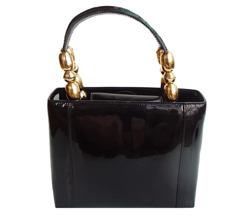 블랙컬러의 유광 소재백입니다.
