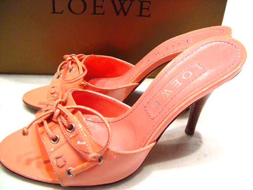로에베 핑크컬러 유광 샌들입니다.