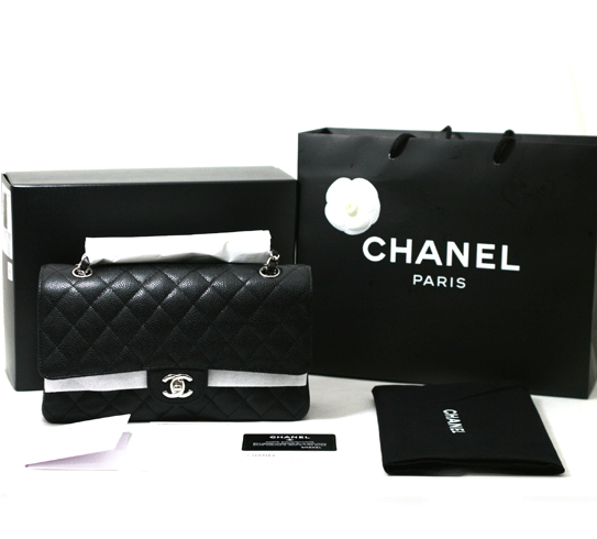 샤넬 클래식 은장 캐비어 숄더백입니다.