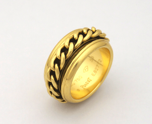 피아제 반지 소재 : 18k 옐로우 골드 사이즈 : 55(국내 15호) 중량 : 18.5g 반지 폭 : 10.3mm 부속품 : 없음 원산지 : 이탈리아