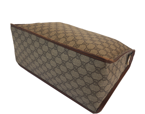구찌 숄더백입니다. PVC소재로 구찌 로고 프린팅 제품입니다. 사용으로 인한 바닥 모서리 마모감, 상단 가죽 테두리 부분 라인으로 마모감 조금씩 있습니다. 제품상태등급 : B+ 사이즈 : 33 * 23 * 15cm 부속품 : 없음 원산지 : 이탈리아