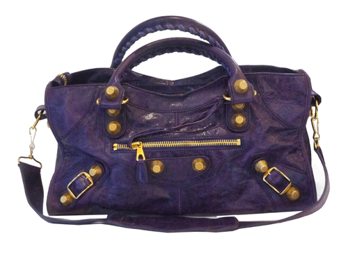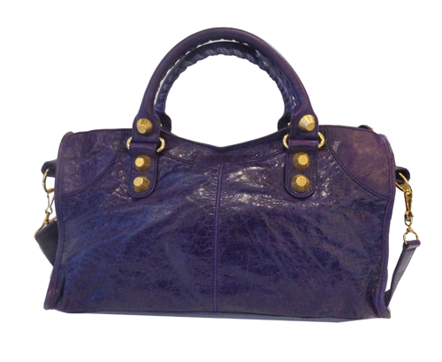 발렌시아가 자이언트백 금장 메탈 장식이 특징이며, 빈티지 가죽 소재로 트렌디한 제품 입니다 사용상 생활 스크래치와 바닥 모서리 마모감 조금 있습니다. 제품상태등급 : A- 사이즈 : 42 * 17 * 22cm 색상 : 보라 부속물 : 거울, 종이택 원산지 : 이탈리아