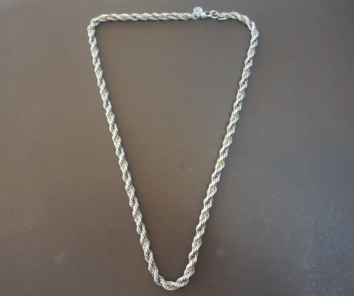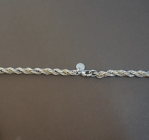 티파니 목걸이입니다. 소재 : 18k 옐로우골드 + Silve(은). 목걸이 총길이 : 46cm 부속품 : 없음 원산지 : 이탈리아