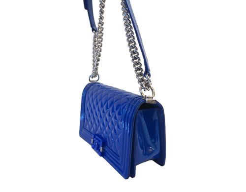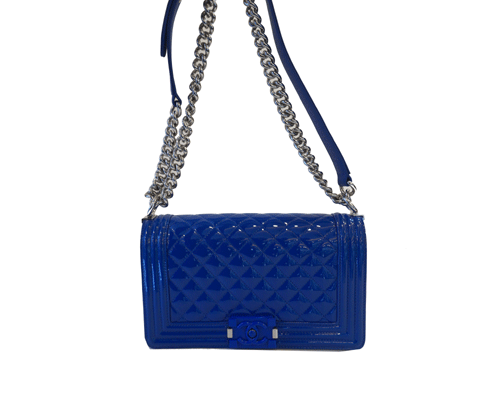 샤넬 보이백입니다. 유광 가죽소재에 볼륨감있는 퀼팅 라인으로 세련된 샤넬 보이백입니다. 더블 C로고 장식과 체인 스트랩의 매치로 브랜드 특유의 멋이 돋보입니다. 블루 컬러, 간단한 수납 가능하며 가장 인기있는 모델입니다. (숄더및 크로스백 사용 가능합니다.) 상태 최상으로 아주 좋은 상태입니다. 제품상태등급 : 특A 사이즈 : 25 * 14.5 * 10cm 부속품 : 개런티 카드 원산지 : 이탈리아 20번대 제품입니다.
